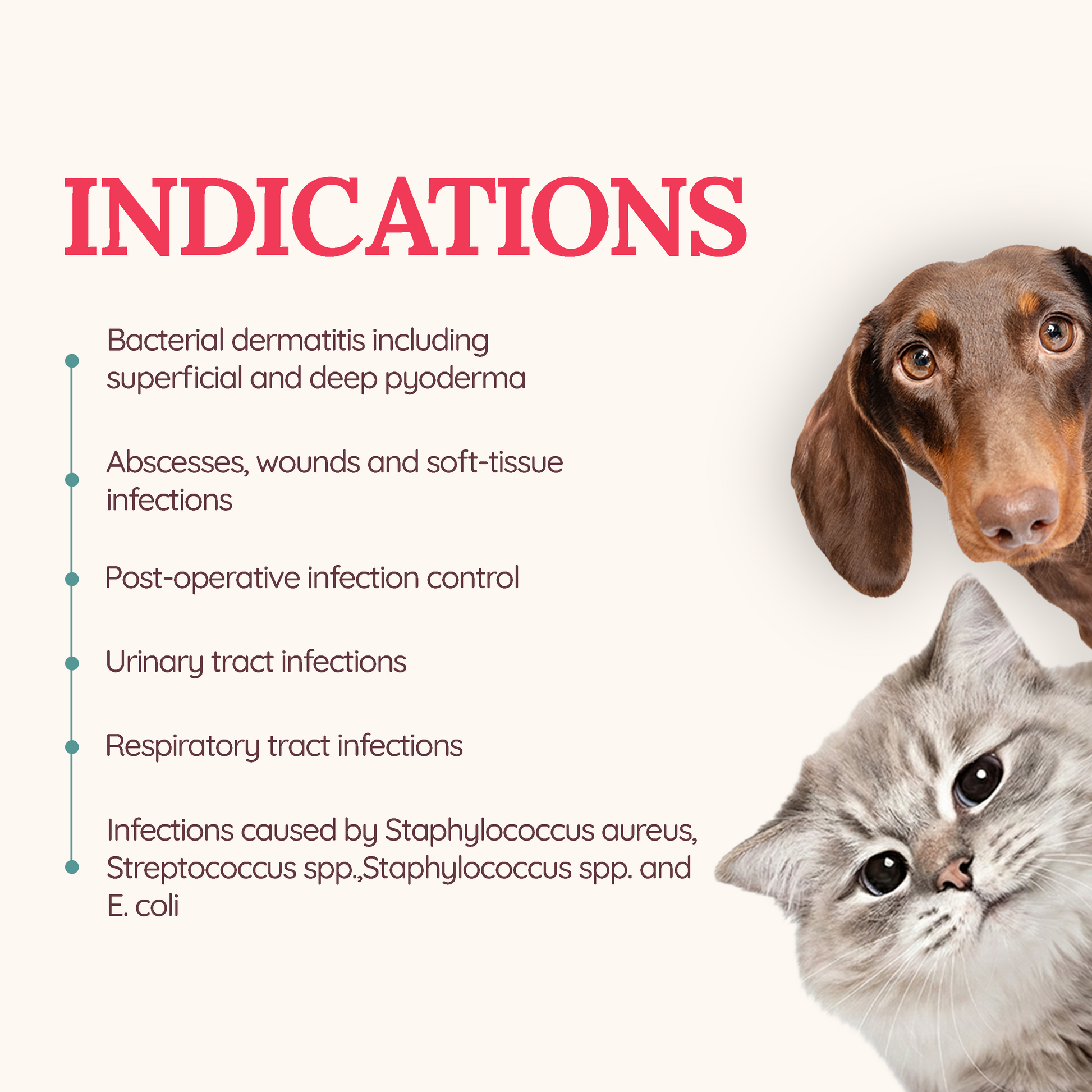 Amoxicillin provides bactericidal action, while Clavulanate protects it from beta-lactamase enzymes, ensuring reliable efficacy even against resistant strains. The addition of LAB spores helps maintain healthy gut flora and reduces the likelihood of gastrointestinal disturbances, which are common with antibiotic use.